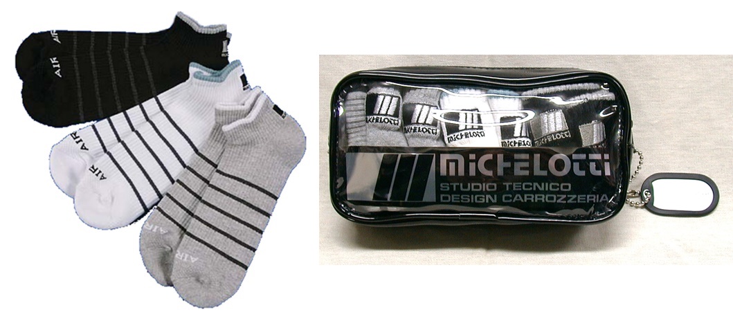 又、踵上にミケロッティのロゴ刺繍グリップを付けることにより、靴下の脱ぎ履きが便利です。